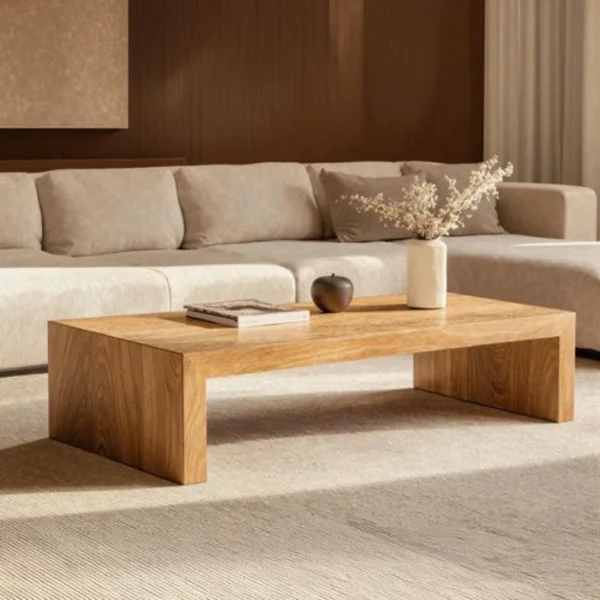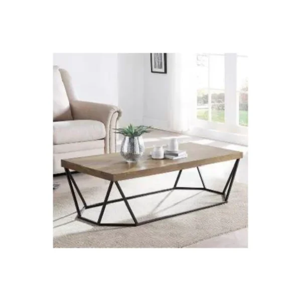 General Modern rectangular coffee table, black steel frame, beige MDF wood surface