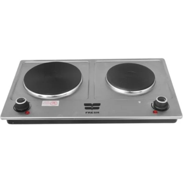 السعر الأصلي هو: 7.687,00 جنيه.5.649,00 جنيهالسعر الحالي هو: 5.649,00 جنيه.Fresh موقد كهربائي بعيون مزدوجة من الستانلس ستيل بقوة 2500 واط
