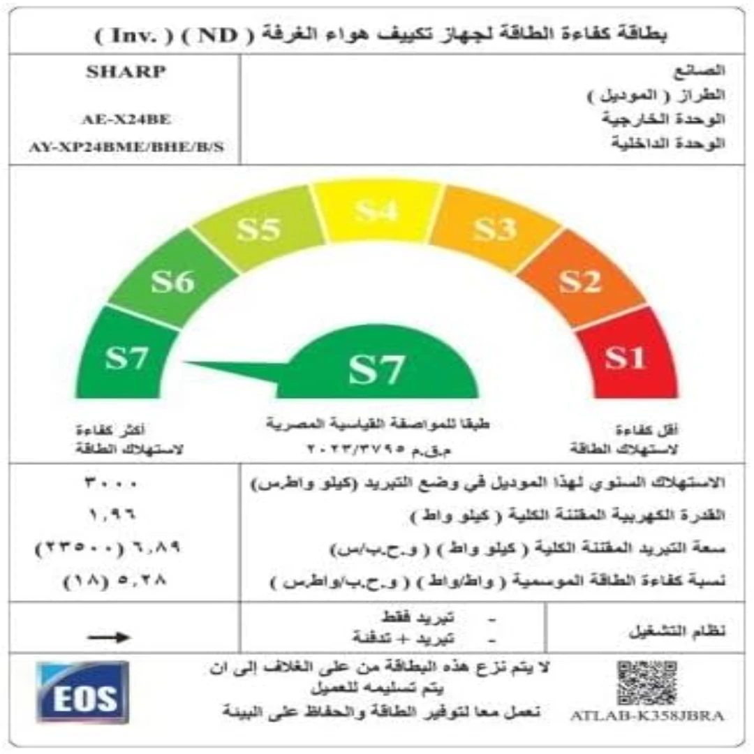 - قدرة التبريد: 24000 (5.290 – 24.910) وحدة حرارية بريطانية/ ساعة.
