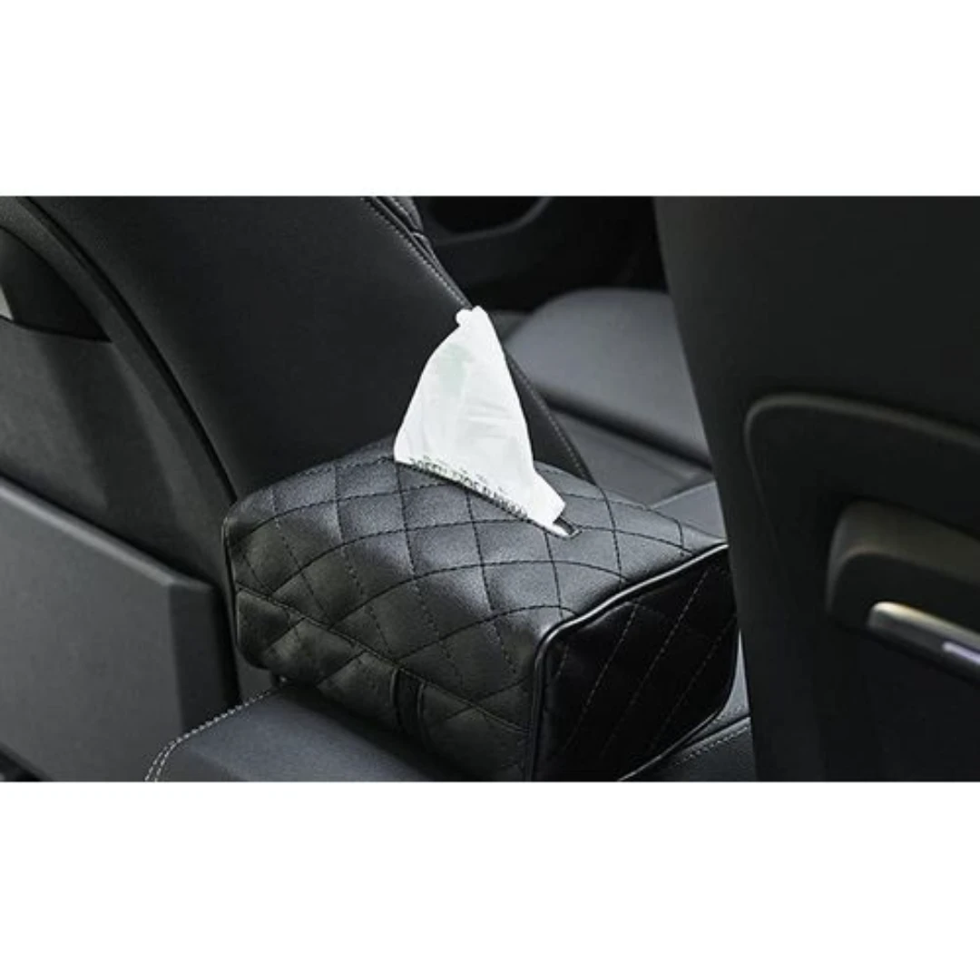 حامل مناديل سيارة أنيق أسود مستطيل من جلد الميكروفايبر