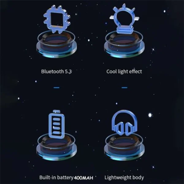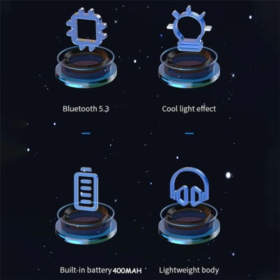 - الإصدار: V5.3 إصدار بلوتوث: SPP، HFP، AVRCP، A2DP وقت التحديث: 6 ساعات مع إضاءة الأضواء و 11 ساعة مع إطفاء الأنوار وقت تشغيل الموسيقى: 7 ساعات مع تشغيل الأضواء و 12 ساعة مع إطفاء الأنوار وقت الشحن: 2.5 ساعة جهد الشحن: 5 فولت DC مسافة البث: 10 م