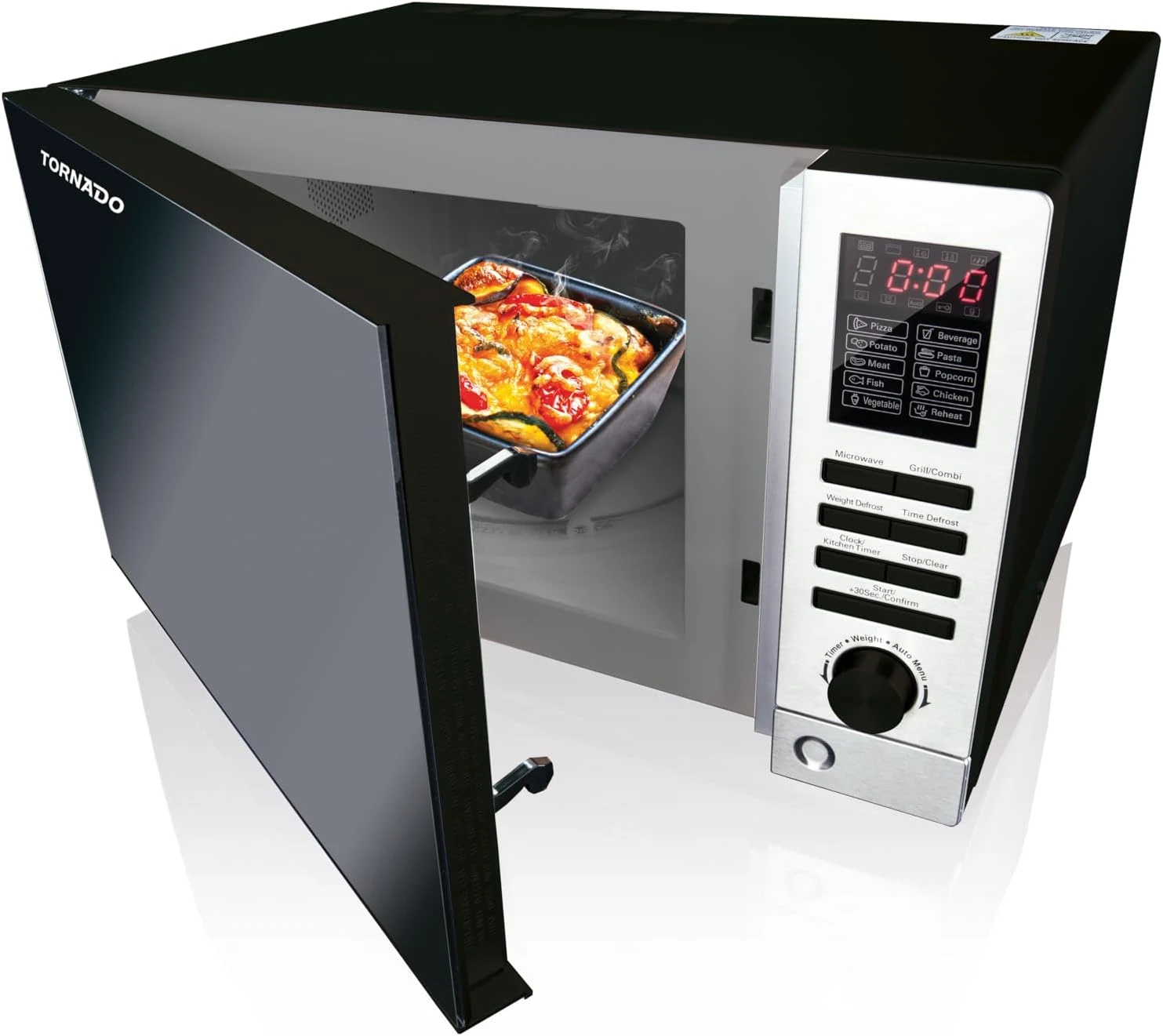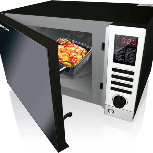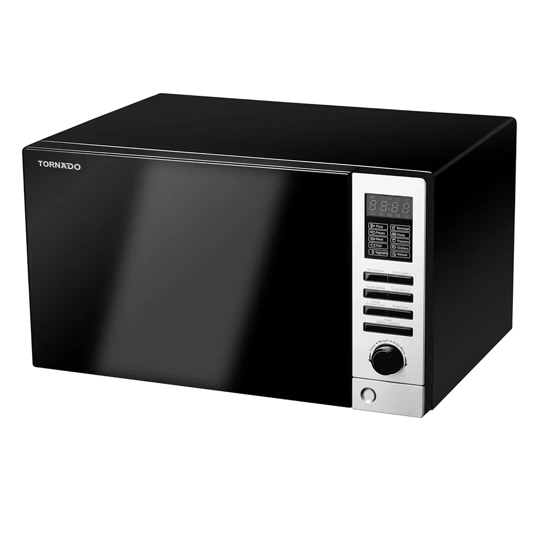 شواية ميكروويف تورنادو سعة 25 لترًا، 900 واط، 10 قوائم طعام، أسود .