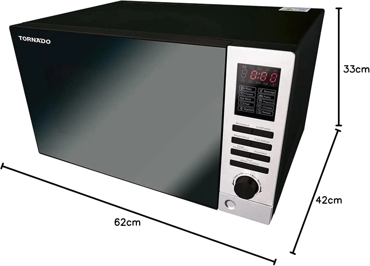 ميكروويف تورنادو سولو سعة 25 لترًا، 900 واط، 8 قوائم طعام، فضي اللون .