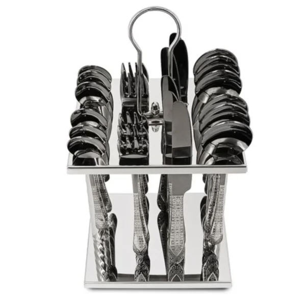- تشكيلة كاملة: يتضمن 6 شوك، 6 ملاعق كبيرة، 6 ملاعق صغيرة، و6 سكاكين.