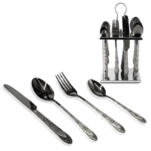 طقم أدوات مائدة من ملاعق وشوك وسكاكين – فضي داكن – 24 قطعة