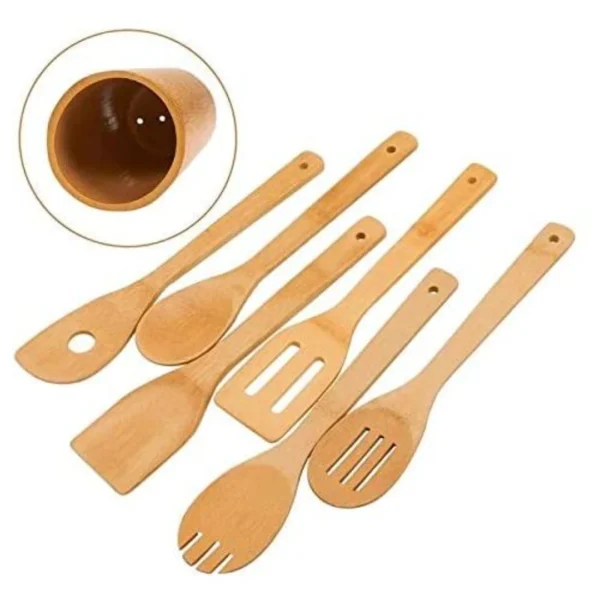 طقم معالق خشب 7 قطع مع حامل خشب