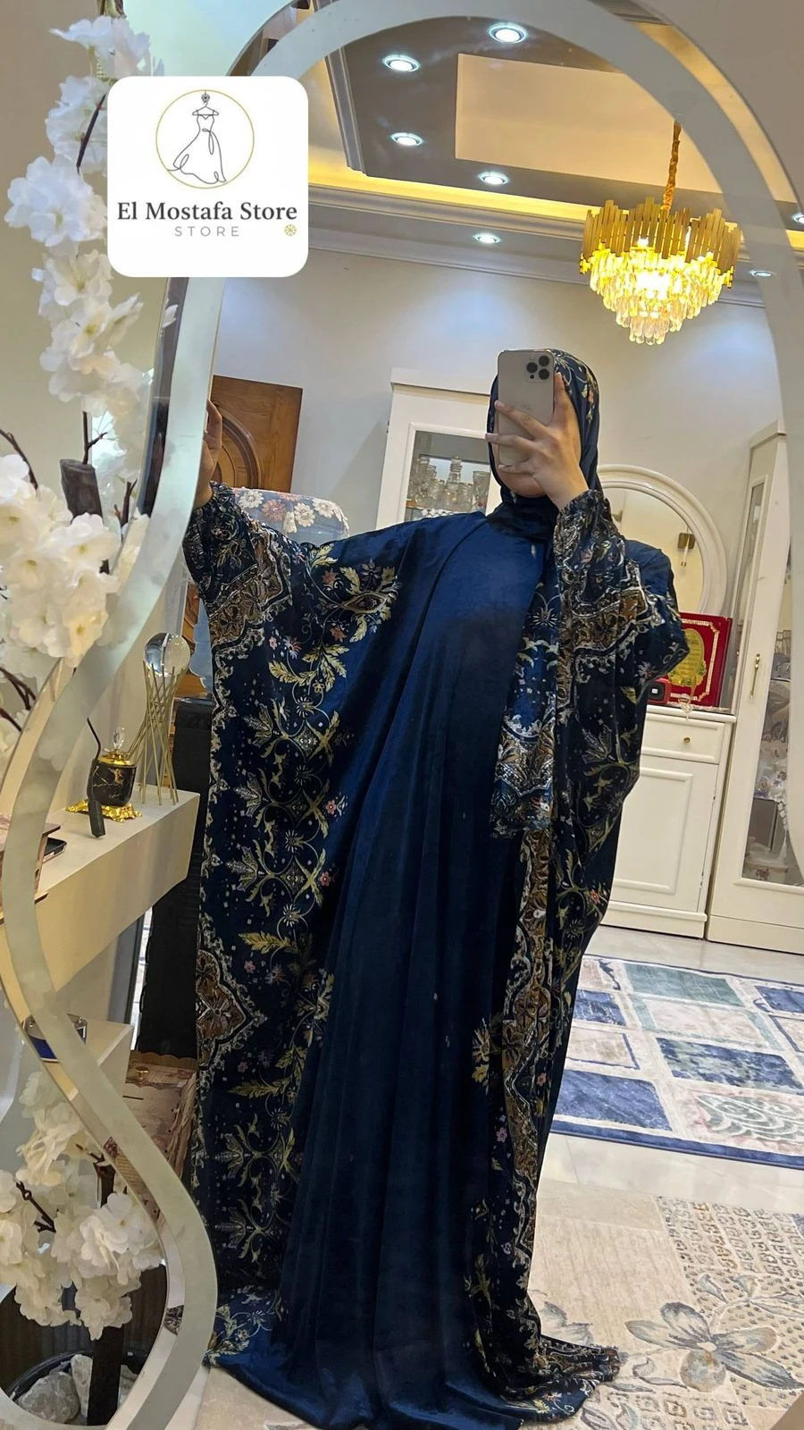 سواد فاحم ولمعة ملكية: تتميز القطيفة بجاذبية خاصة في الإضاءة، مما يمنحكِ حضوراً طاغياً وفخامة لا تضاهى.
