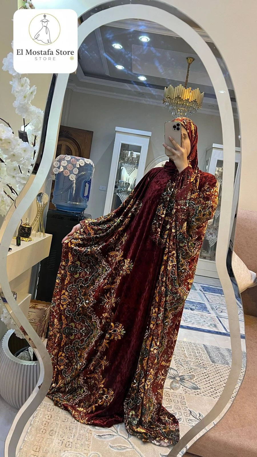 عباية قطيفة شتوية فاخرة – ملمس شمواه ناعم وقصة ملكية دافئ