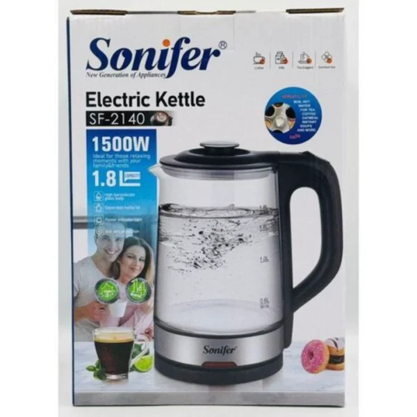 غلاية زجاجية من سونيفر – تصميم أنيق مع حماية من الجفاف والحرارة الزائدة.