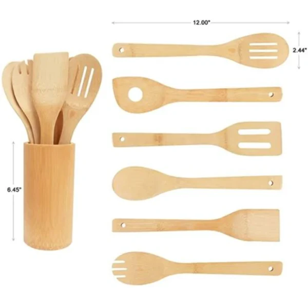 طقم معالق خشب 7 قطع مع حامل خشب