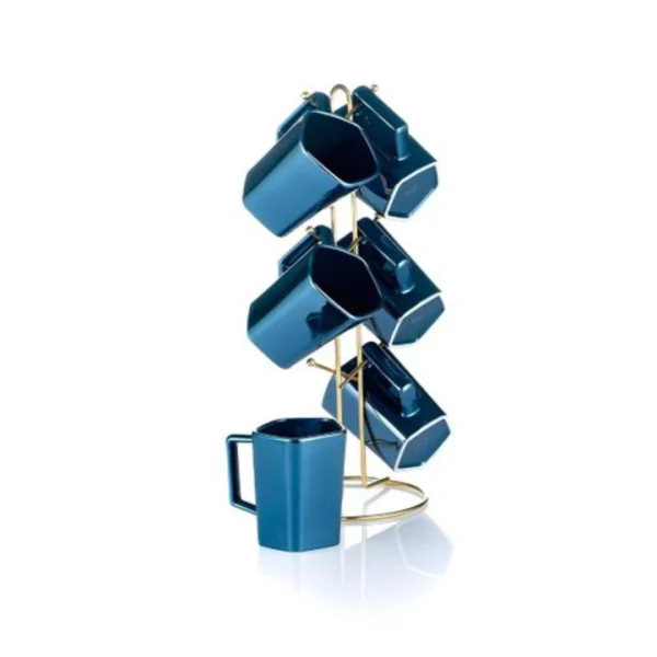 Lotus طقم مج شاي بورسلين مكون من 6 قطع + حامل، مصنوع من مواد عالية الجودة
