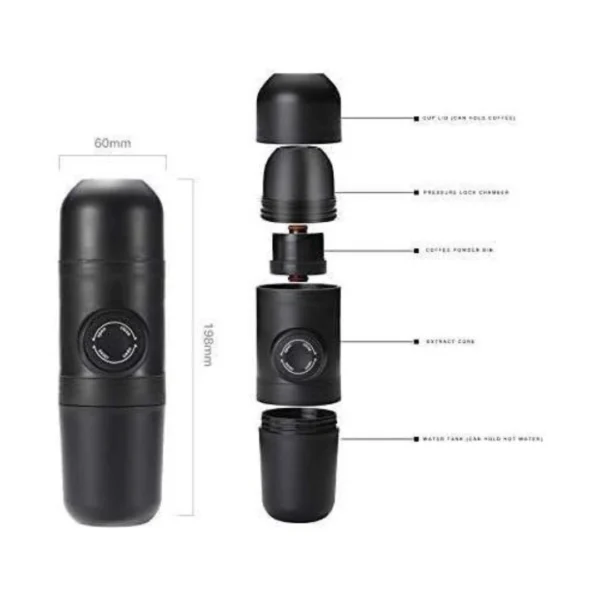 ماكينة قهوة اسبريسو يدوية محمولة مصنوعة من مواد آمنة غذائيًا، تتميز بضغط شبه أوتوماتيكي لضمان استخراج مثالي للقهوة. تصميمها بسيط وسهل الاستخدام والتنظيف، ولا تحتاج إلى كهرباء. مثالية للمغامرات الخارجية بفضل حجمها الصغير وقدرتها على الحفاظ على حرارة القهوة. نضمن لك جودة وفعالية هذه الماكينة.