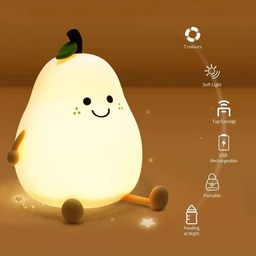مصباح ليلي من السيليكون بتصميم كمثرة يعمل باللمس للاطفال لطيف لتزيين غرفة الاطفال مع 7 الوان متعددة