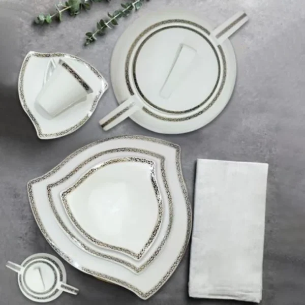 طقم عشاء كونكورد 62 قطعة هو الخيار المثالي لمناسبات العشاء المختلفة، حيث يجمع بين الأناقة والعملية في تصميم جميل يضيف لمسة أنيقة لطاولة طعامك. يتكون من: