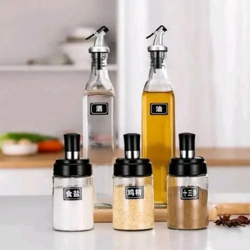 طقم موزع الزيت والخل وعبوات توابل للمطبخ، 5 قطع