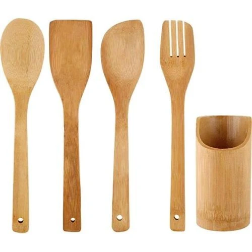 معالق خشب بحامل عدد 5 قطع – لطهى طعام صحى – معلقة خشبية وشوك