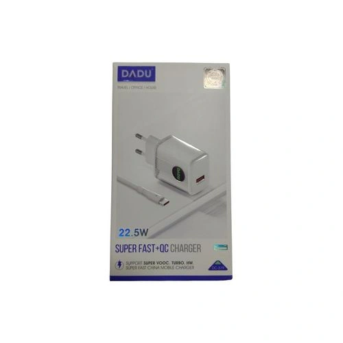 شاحن حائط DADU بقدرة 22.5 وات يدعم الشحن السريع QC مع كابل Type-C، آمن وعملي للاستخدام اليومي في المنزل أو المكتب.