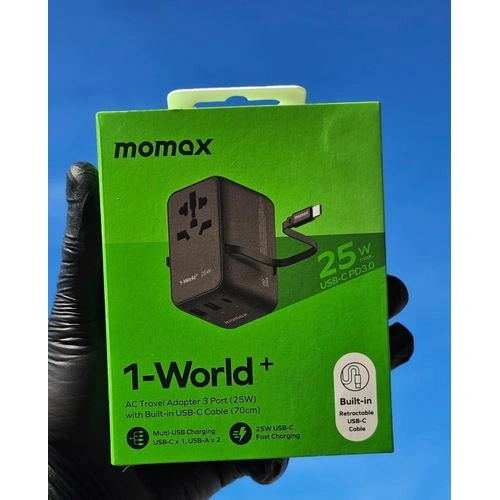Momax 1-World+ 3-Port Travel Charger Built-In USB-C Cable 25W