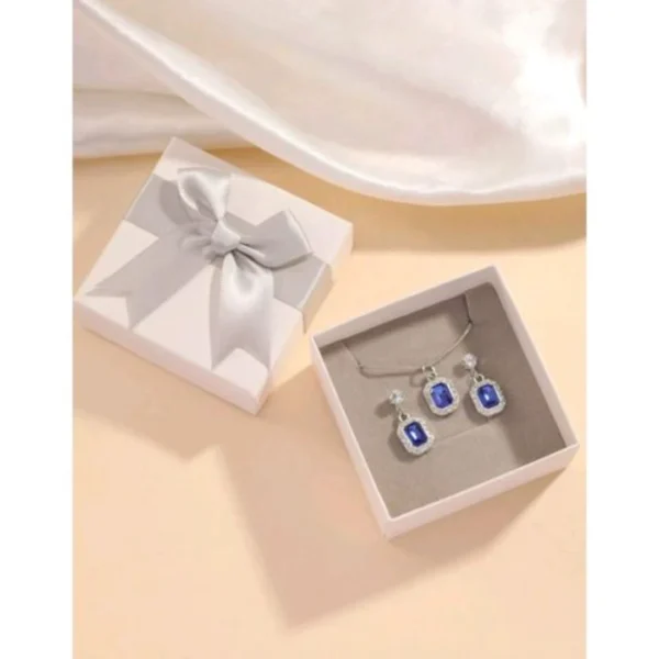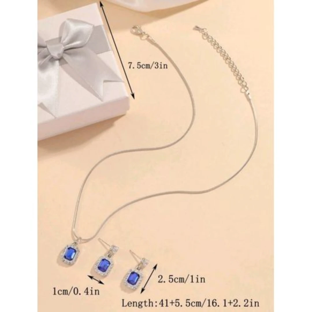 - تصميم أنيق: يتضمن قلادة وأقراط بأحجار كريمة زرقاء تضفي لمسة من الفخامة.